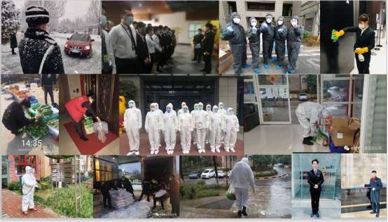 在疫情期間,武漢羅納河谷項(xiàng)目管家舒林千方百計(jì)幫助感染業(yè)主聯(lián)系病床,協(xié)助轉(zhuǎn)移,堅(jiān)持為孤寡老人送菜,為業(yè)主解決日常生活各種難題,被業(yè)主稱為“生死之交”;青島蔚藍(lán)群島四期項(xiàng)目經(jīng)理韓楓翔身先士卒、勇于擔(dān)當(dāng),顧不上照顧待產(chǎn)的妻子和襁褓中的兒子,危機(jī)關(guān)頭帶領(lǐng)團(tuán)隊(duì)連續(xù)作戰(zhàn),用責(zé)任和擔(dān)當(dāng)為蔚藍(lán)群島社區(qū)居民筑牢“防護(hù)墻”;華為北京研究所項(xiàng)目門崗小哥大雪紛飛,堅(jiān)守一線,日查車輛1000余臺(tái)次,下班后發(fā)現(xiàn)雙腳已經(jīng)凍裂。有嚴(yán)把大廈測(cè)溫管控關(guān),在停車場(chǎng)登記發(fā)現(xiàn)有體溫異常而司機(jī)強(qiáng)行駕車離開時(shí)妥當(dāng)處理、防患于未然的停車場(chǎng)班長(zhǎng)劉永貴;有疫情期間在武漢長(zhǎng)時(shí)間吃泡面喝自來水充饑、自始至終堅(jiān)持值守的安管班長(zhǎng)金先衍;有在疫情期間給春節(jié)值守的項(xiàng)目同事寫了八十多封鼓勵(lì)信的56歲的保潔大叔胡孝全;也有把年夜飯搬到項(xiàng)目,親自掌勺與項(xiàng)目同事一起奮戰(zhàn)的大區(qū)經(jīng)理田桂峰;更多是疫情期間采取“白+黑”模式全天候值守、主動(dòng)放棄與家人團(tuán)結(jié)的數(shù)千名卓越一線員工……