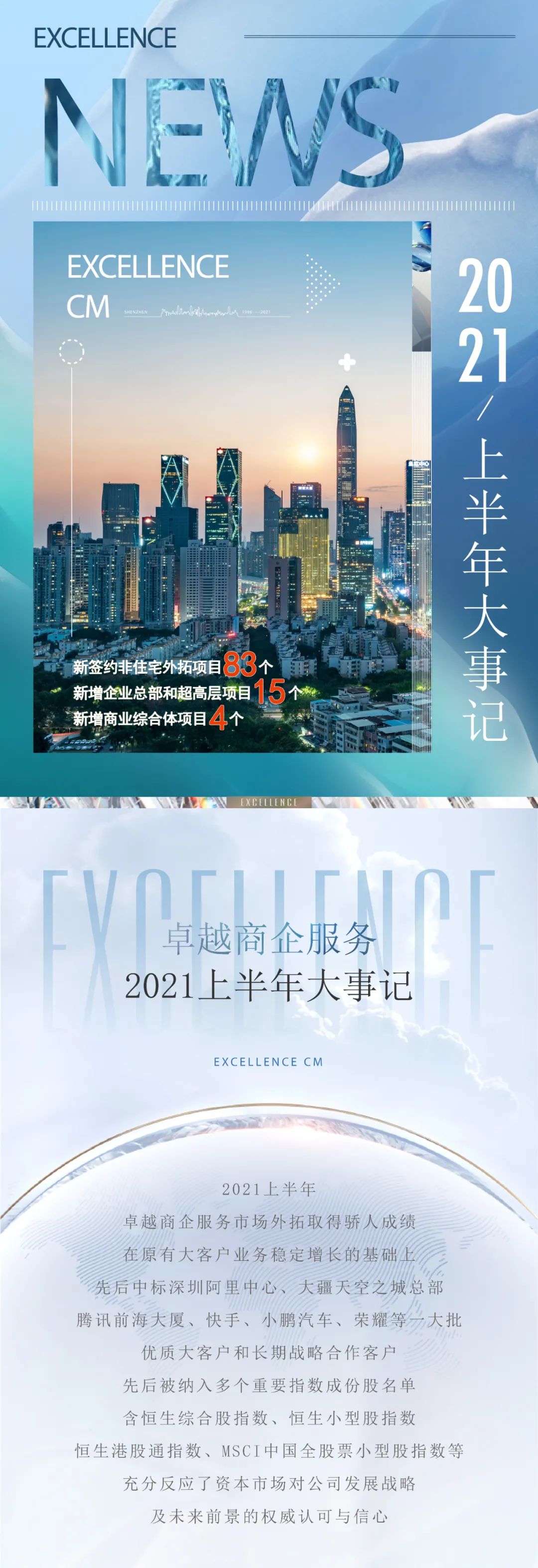 2021年上半年,卓越商企服務(wù)市場拓展高歌猛進、一路向前,而伴隨著下半年業(yè)務(wù)爆發(fā)期的到來,公司市場外拓和業(yè)務(wù)增長將迎來更加欣欣向榮的發(fā)展局面。未來可期,卓越商企服務(wù)將持續(xù)以豐富的內(nèi)生資源、強大的外拓能力,加上能滿足多業(yè)態(tài)并覆蓋物業(yè)全生命周期的全產(chǎn)業(yè)鏈的綜合服務(wù),以及強大的線上、線下多場景增值服務(wù)發(fā)展空間,在商管賽道上穩(wěn)健增長,為中國商務(wù)物業(yè)領(lǐng)域樹立行業(yè)標桿。