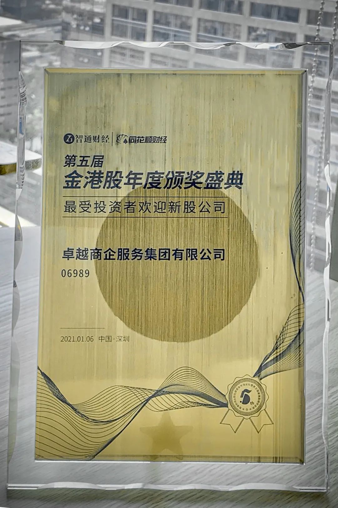 不忘初心,砥礪前行。卓越商企服務(wù)(股份代號:6989.HK),獲納入恒生綜合指數(shù)成份股名單,并榮膺,第五屆“金港股”頒獎盛典榮獲“最受投資者歡迎新股公司”獎項。卓越商企服務(wù)拿下多獎,在開拓的道路上,持續(xù)綻放。