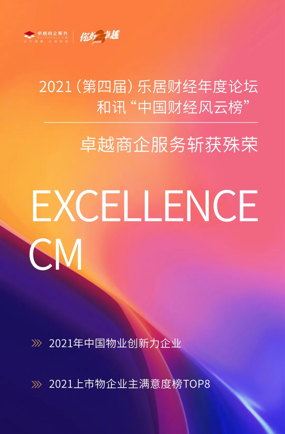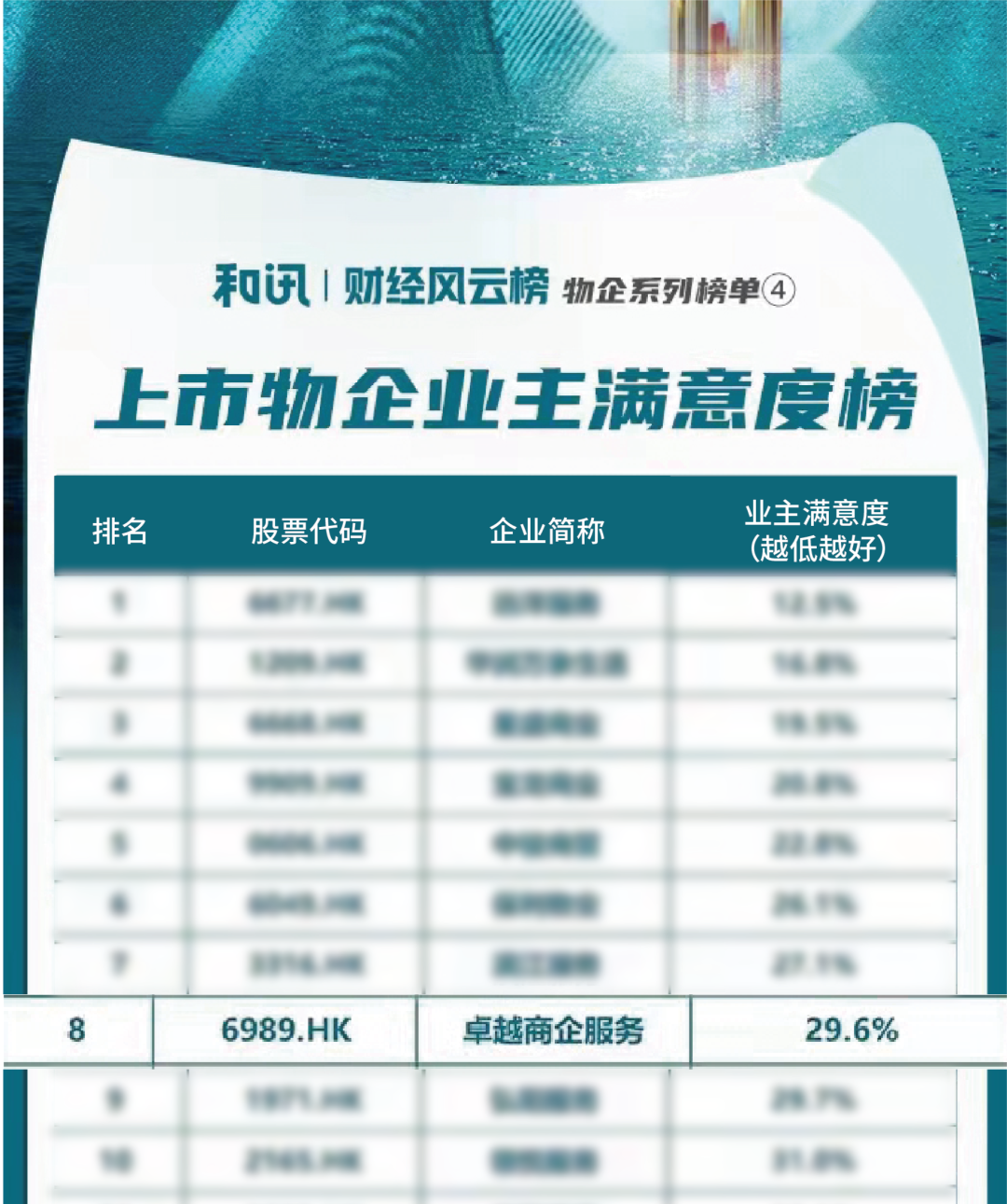 值得慶賀的是,在同期發(fā)布的和訊“中國財經(jīng)風(fēng)云榜“上,卓越商企服務(wù)更是憑借優(yōu)異的財務(wù)表現(xiàn)和權(quán)威測評,榮登“2021上市物企業(yè)主滿意度榜TOP8”。