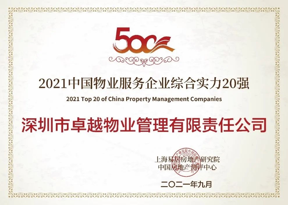 在測(cè)評(píng)中,卓越商企服務(wù)榮獲“2021中國(guó)物業(yè)服務(wù)企業(yè)綜合實(shí)力20強(qiáng)(TOP15)”,充分證明了公司行業(yè)領(lǐng)先的發(fā)展優(yōu)勢(shì)和優(yōu)質(zhì)的綜合實(shí)力。