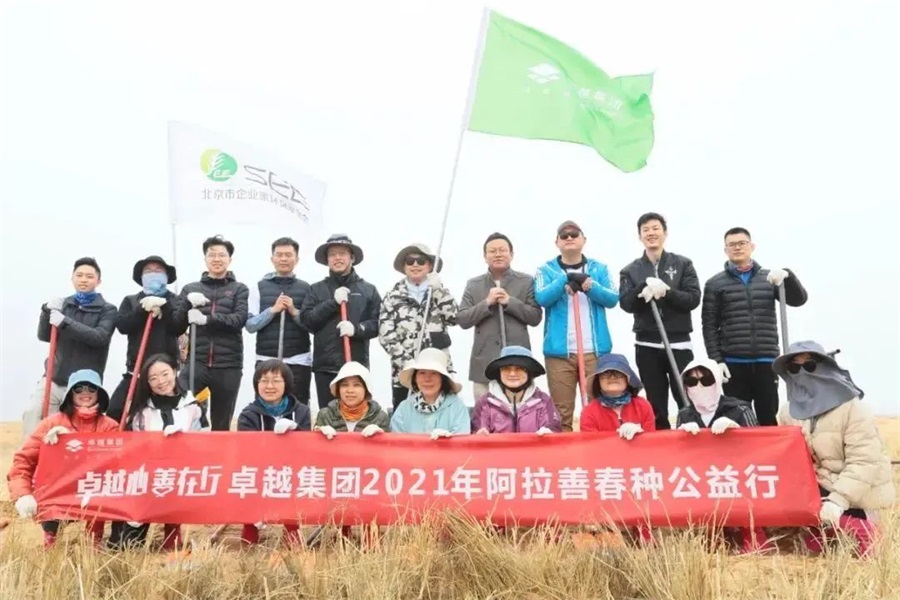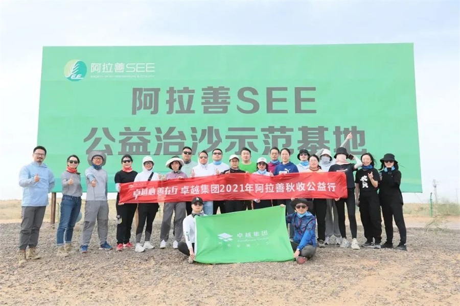 2021年,卓越集團捐贈30萬投入到阿拉善SEE基金會發(fā)起的“一億棵梭梭”項目(合計600畝)?!耙粌|棵梭梭”項目由阿拉善SEE公益機構發(fā)起,旨在搭建多方參與平臺,致力于用十年的時間(2014—2023年)在阿拉善關鍵生態(tài)區(qū)種植一億棵以梭梭樹為代表的沙生植物,恢復200萬畝荒漠植被,從而改善當?shù)厣鷳B(tài)環(huán)境,遏制荒漠化蔓延趨勢。