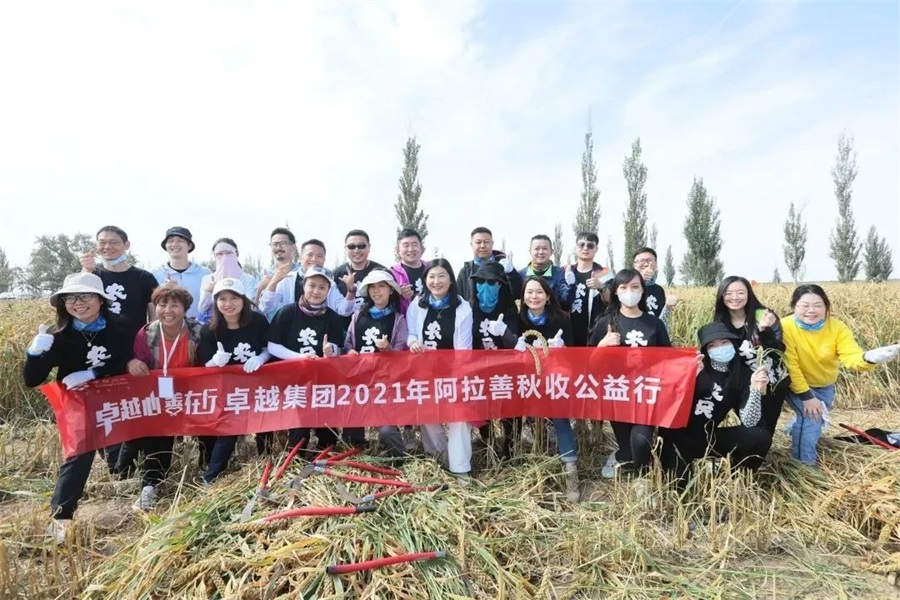 今年4月,在卓越公益的組織下,19位卓越集團員工曾抵達阿拉善,參與沙漠小米春播與梭梭樹等沙漠植物的種植公益活動。為延續(xù)善舉,更為履行責任,9月,卓越集團的代表再赴阿拉善,展開對前次公益活動的深度回訪。