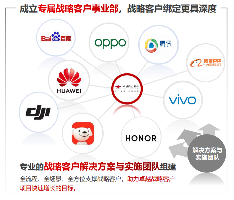 成立專(zhuān)屬戰(zhàn)略客戶(hù)事業(yè)部,配置專(zhuān)屬的戰(zhàn)略客戶(hù)中臺(tái)團(tuán)隊(duì),對(duì)戰(zhàn)略客戶(hù)進(jìn)行重點(diǎn)支撐及拉通管理