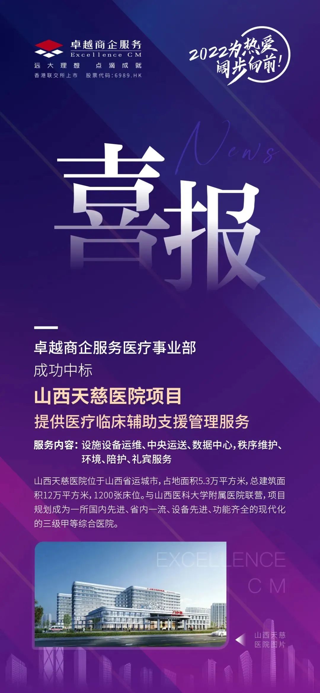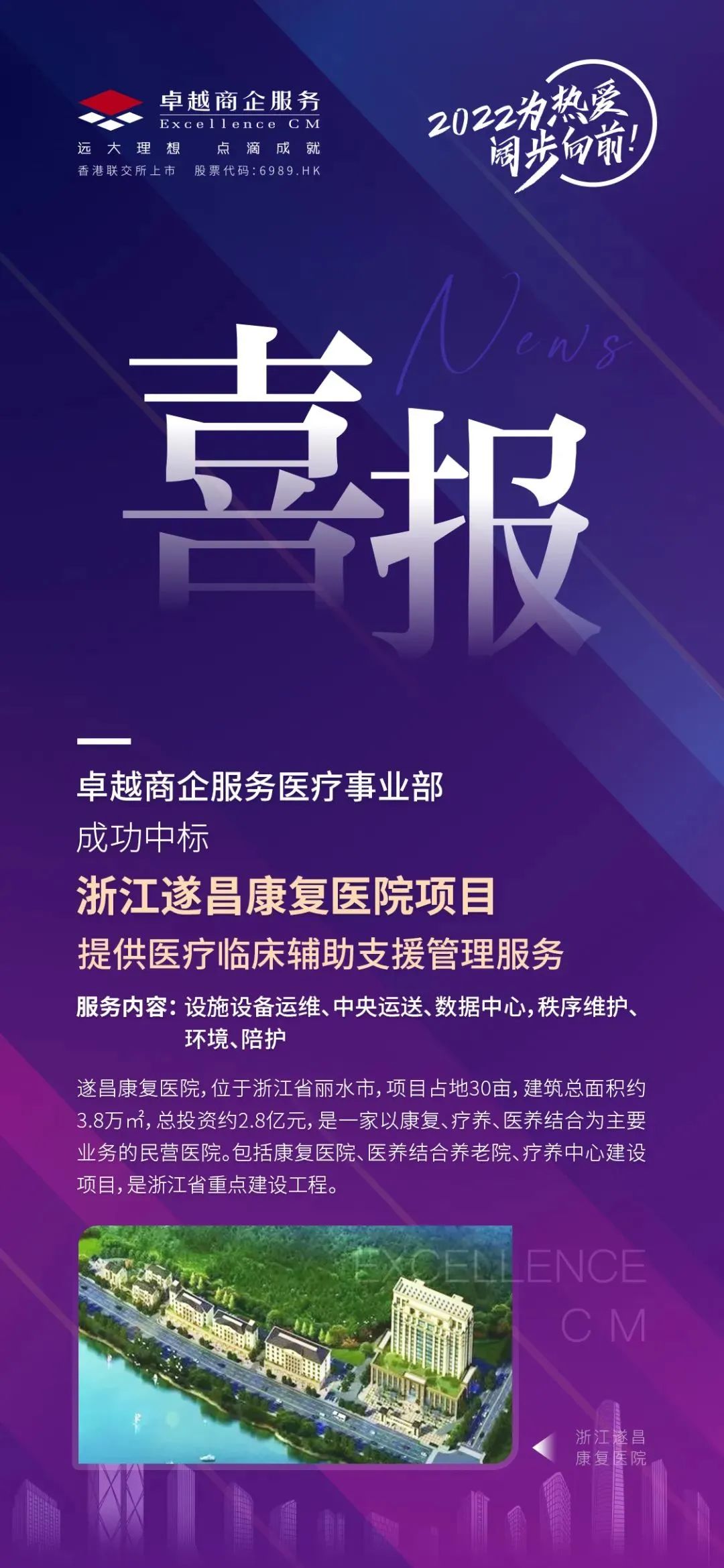 此次中標(biāo)的山西天慈醫(yī)院及浙江遂昌康復(fù)醫(yī)院物業(yè)管理服務(wù),都是醫(yī)療臨床輔助支援管理服務(wù)全委項(xiàng)目。卓越商企服務(wù)將在傳統(tǒng)物管基礎(chǔ)上,為其提供涵蓋設(shè)施設(shè)備運(yùn)維、中央運(yùn)送、數(shù)據(jù)中心、秩序維護(hù)、環(huán)境、陪護(hù)、禮賓等廣泛內(nèi)容的綜合物業(yè)服務(wù)。