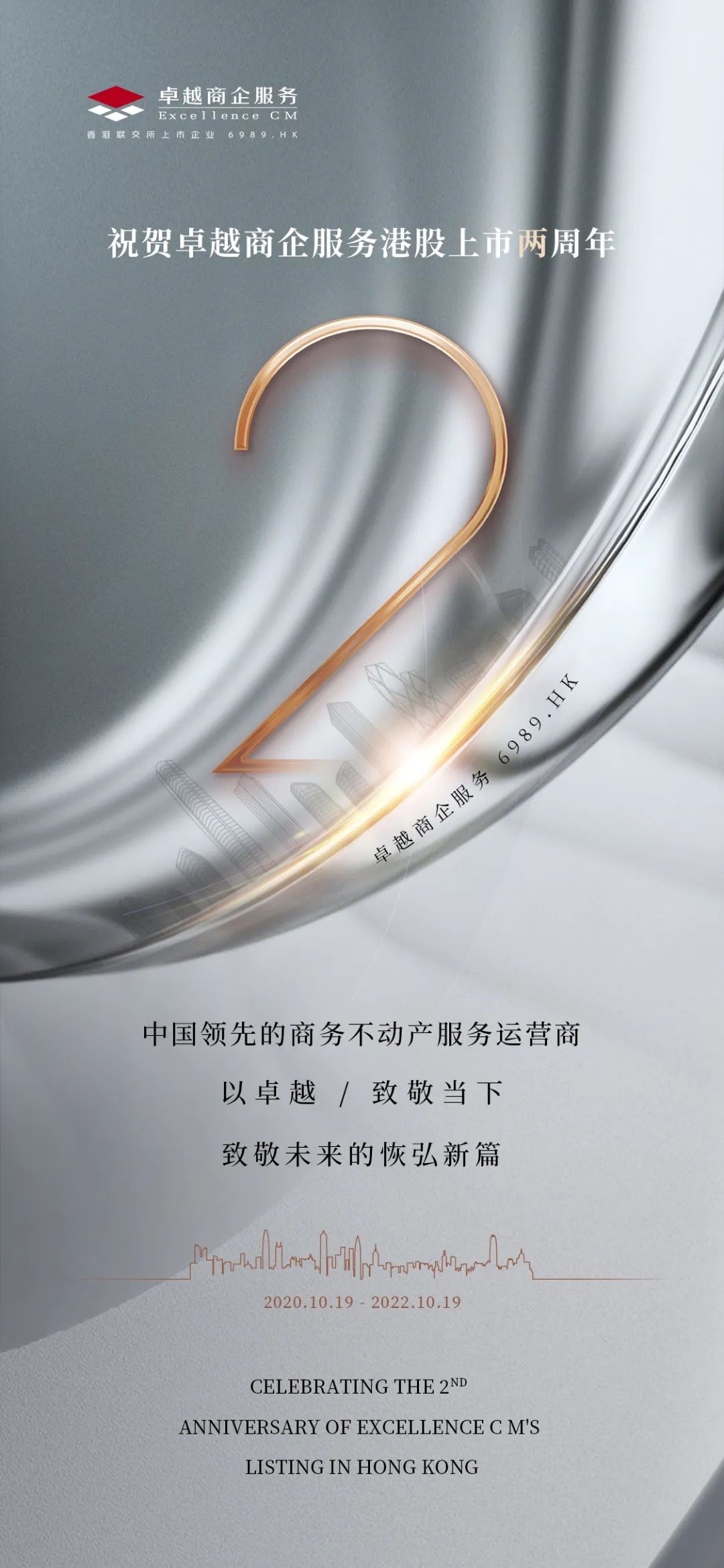 行穩(wěn)致遠(yuǎn),勇毅前行。在上市兩周年之時(shí),一個(gè)業(yè)務(wù)體系更專注、發(fā)展路徑更清晰、發(fā)展目標(biāo)更堅(jiān)定的卓越商企服務(wù)正闊步向前。