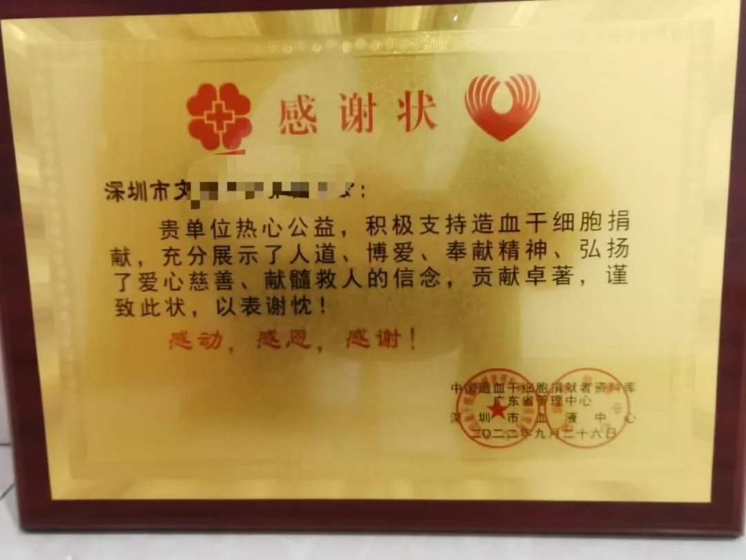 △深圳市血液中心頒發(fā)給劉義的感謝狀
