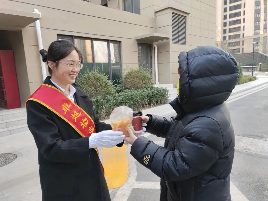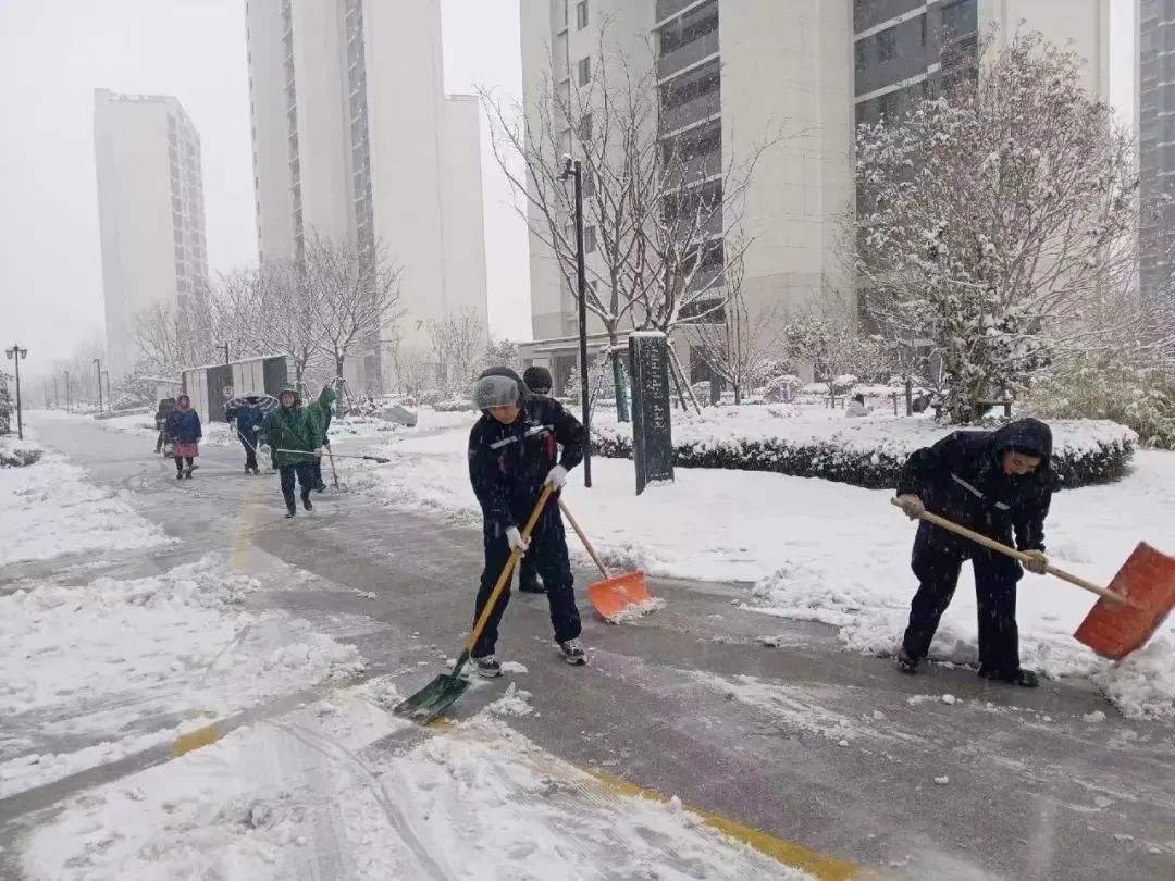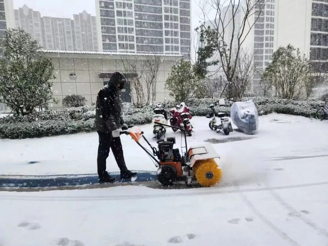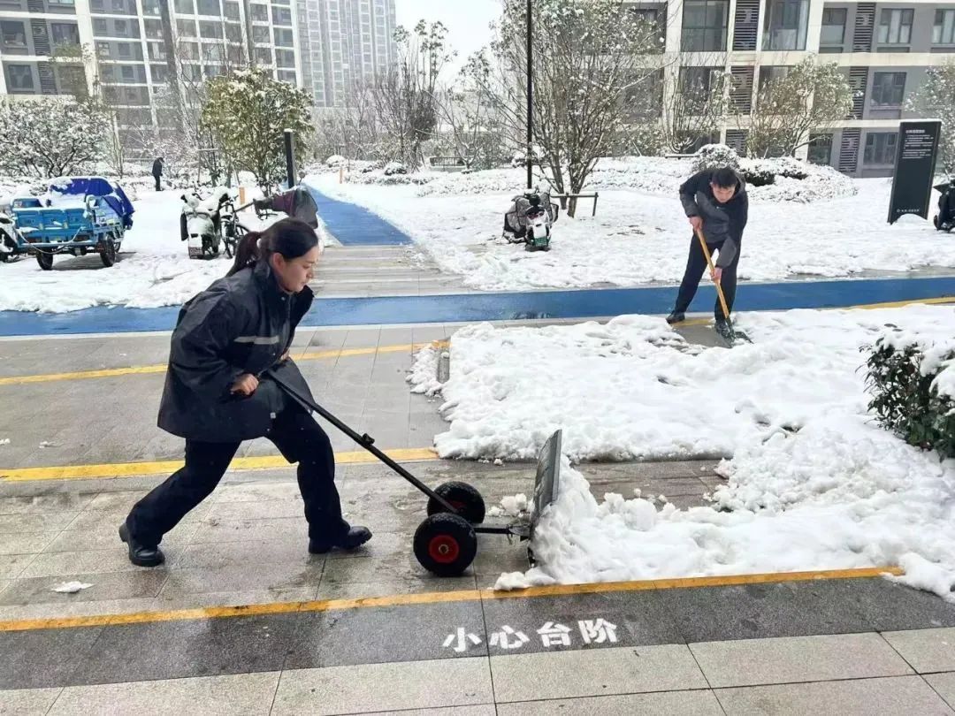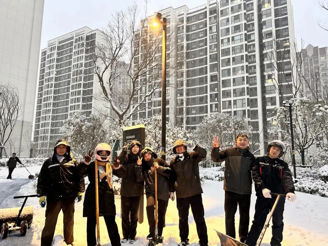 卓越服務(wù)人員晨間冒著嚴(yán)寒掃雪除冰