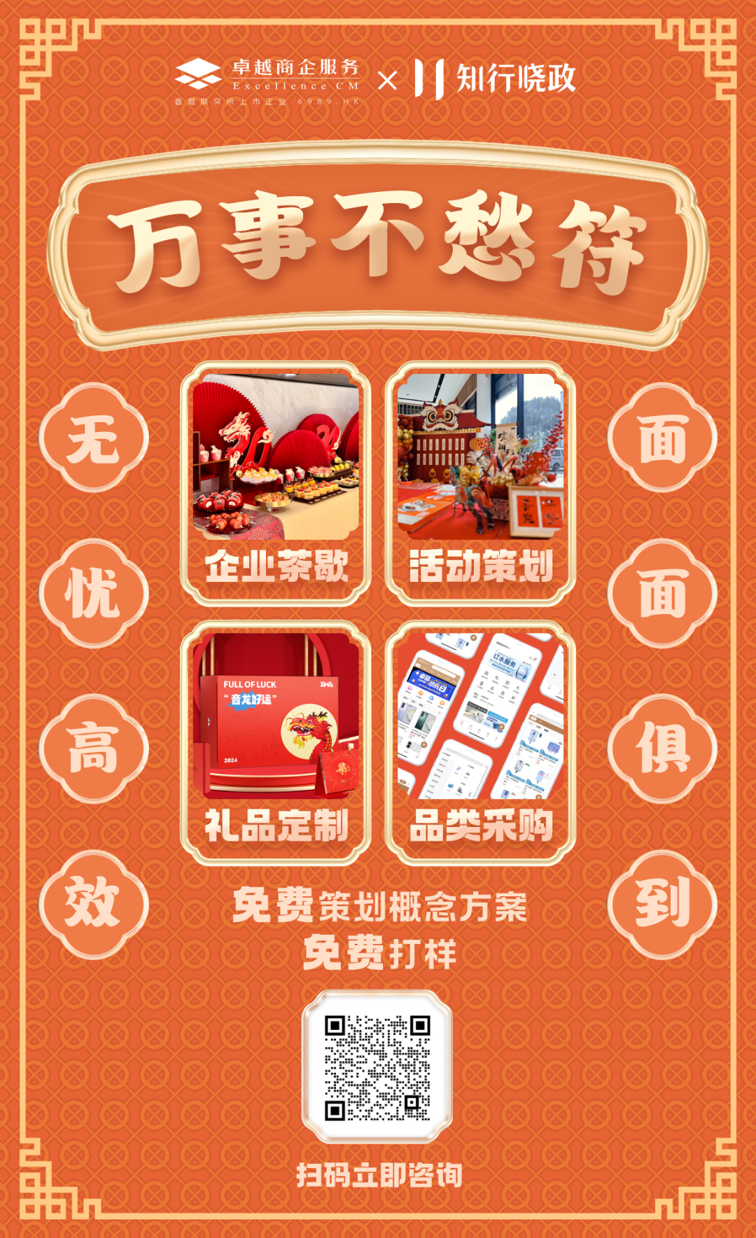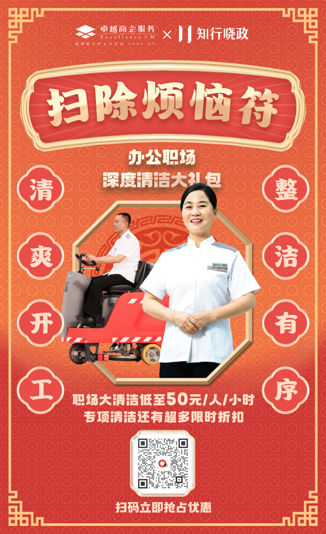 卓越商企服務(wù)聯(lián)合知行曉政為廣大行政送上開(kāi)工祈愿符,多重驚喜優(yōu)惠福利大放送,新年有卓越商企服務(wù)提供的職場(chǎng)企業(yè)服務(wù)、行政后勤綜合服務(wù)加持,幫助行政人群把一些活兒(如:保安、保潔、接待、前臺(tái)、后勤服務(wù)、員工福利……)都干了,讓行政運(yùn)營(yíng)美美做甲方,省心無(wú)憂、沒(méi)有麻煩事、全年無(wú)槽點(diǎn),行政萬(wàn)事不愁。
