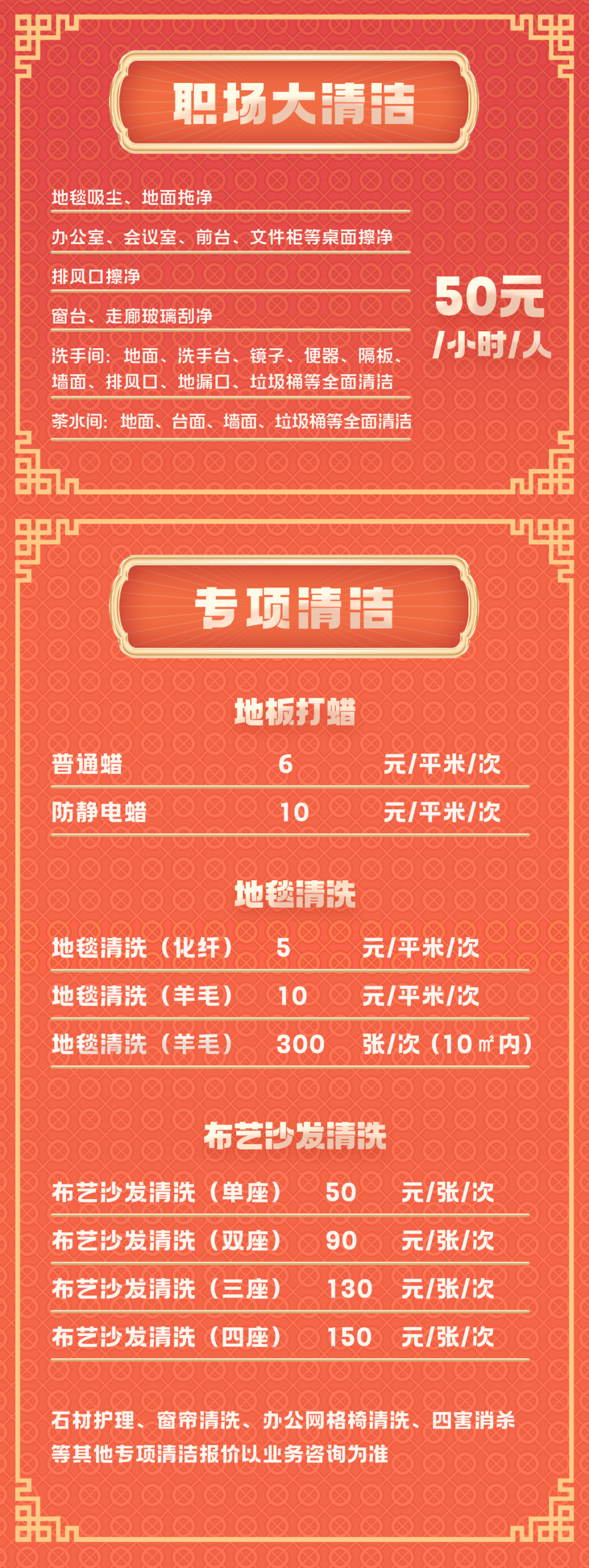 卓壹環(huán)境服務(wù)特別為行政小伙伴準(zhǔn)備了開(kāi)工福利價(jià),及多重專(zhuān)項(xiàng)清潔優(yōu)惠。
