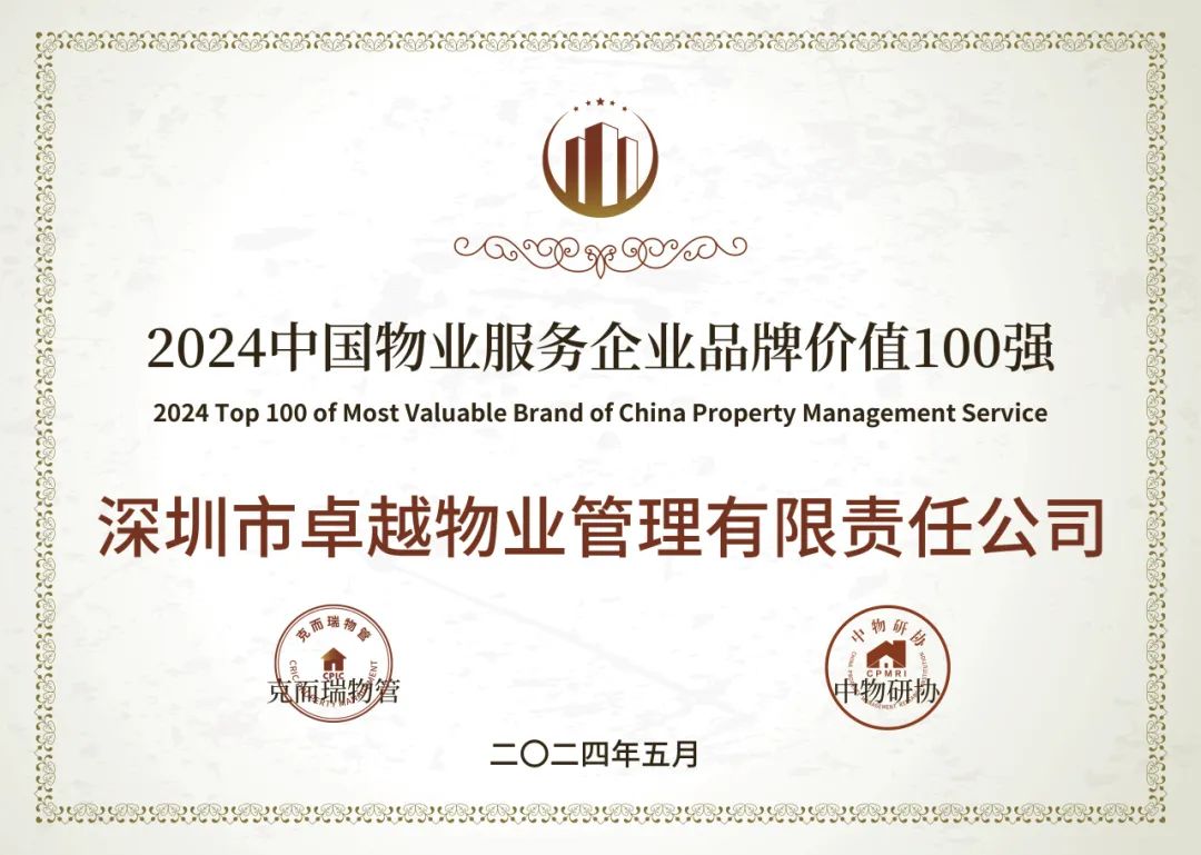 自2020年克而瑞首次發(fā)起中國物業(yè)服務企業(yè)服務力研究以來,卓越商企服務憑借領(lǐng)先的綜合實力和服務水平連續(xù)4年榮膺「中國物業(yè)服務力百強企業(yè)」、「2024中國物業(yè)服務企業(yè)品牌價值100強」等多項榮譽!