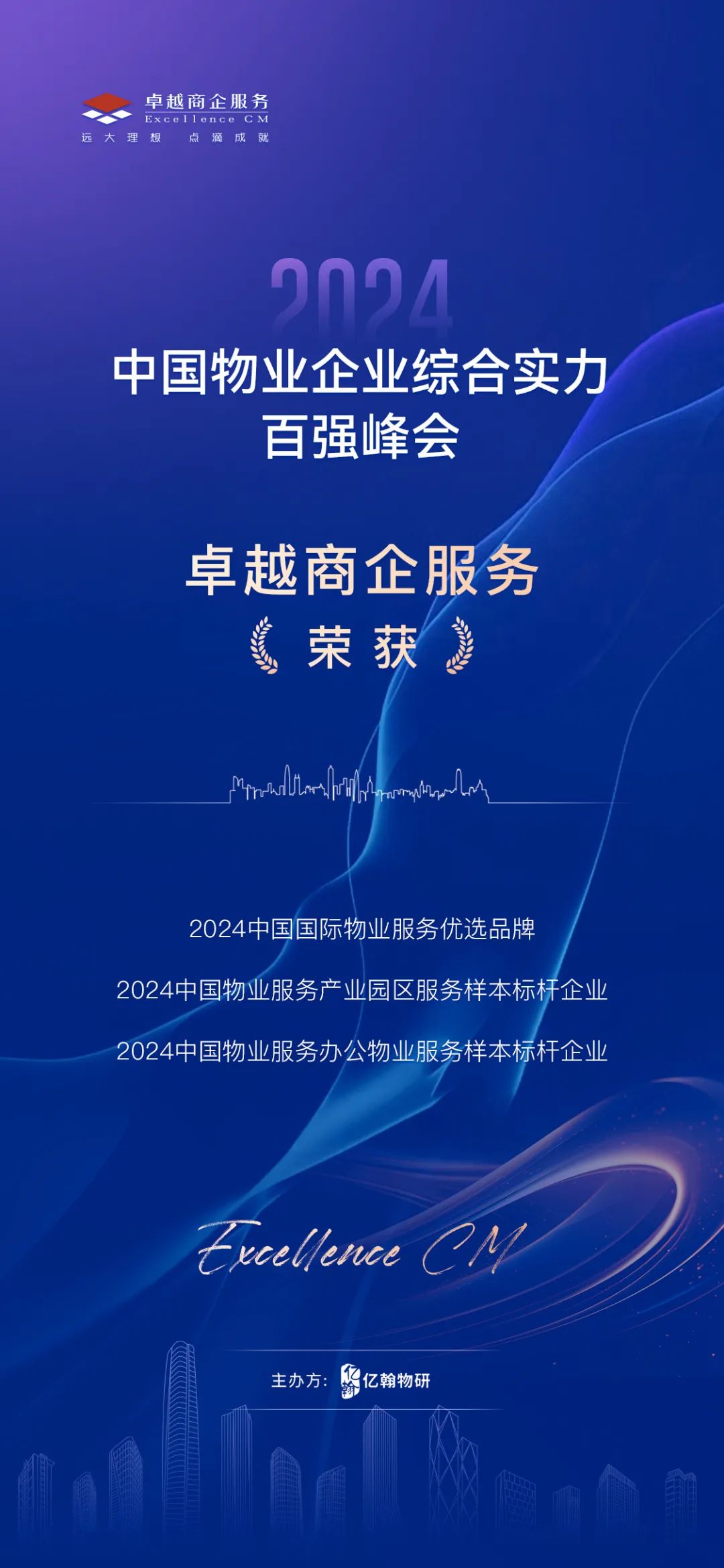 卓越榮譽|卓越商企服務(wù)榮獲「2024 中國物業(yè)服務(wù)辦公物業(yè)樣本標桿企業(yè)」等榮譽