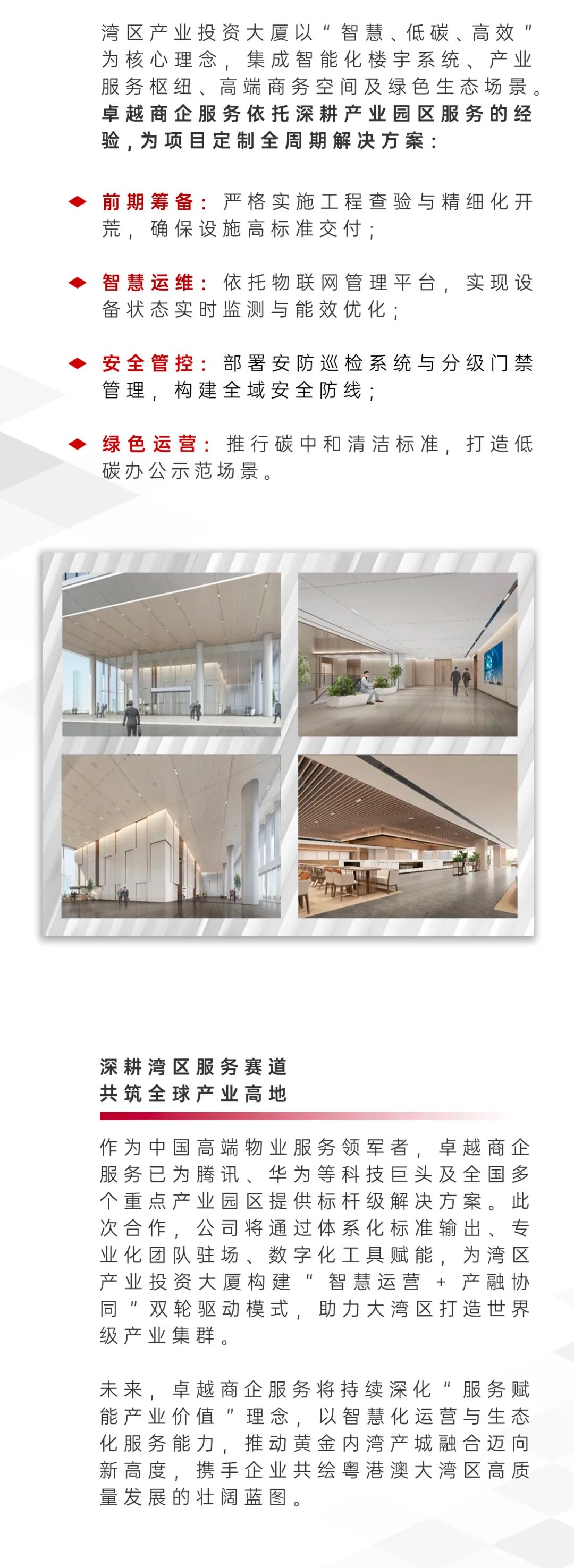 卓越·共贏丨引領(lǐng)高端商務(wù)服務(wù),卓越商企服務(wù)為灣區(qū)產(chǎn)業(yè)投資大廈提供全委物業(yè)服務(wù)