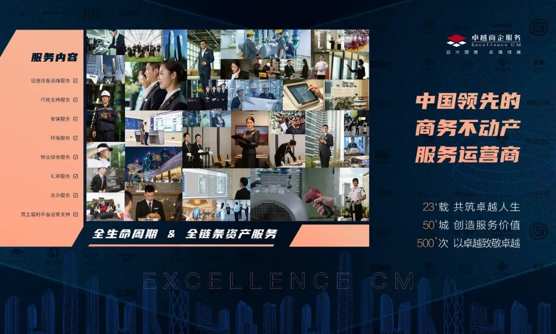 卓越商企服務(wù)作為中國領(lǐng)先的商務(wù)不動產(chǎn)服務(wù)運營商,深耕地產(chǎn)物業(yè)服務(wù)20余年,在商務(wù)物業(yè)及企業(yè)工作場所、公共建筑、產(chǎn)業(yè)園區(qū)等業(yè)態(tài)均有所布局,致力于為客戶提供全生命周期商務(wù)資產(chǎn)維護和全鏈條的服務(wù)解決方案。