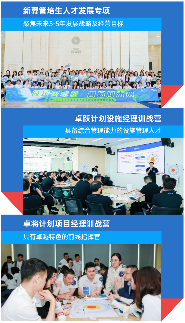 另一方面,穩(wěn)步擴(kuò)張的規(guī)模和業(yè)務(wù)拓展對人才培養(yǎng)及儲備提出了更高的要求,公司長期以來非常重視人才培養(yǎng)及儲備,通過對新翼管培生、卓將-項目經(jīng)理、卓躍-設(shè)施經(jīng)理等關(guān)鍵人才的培養(yǎng),以全面支撐業(yè)務(wù)快速拓展,持續(xù)提升公司核心競爭力。