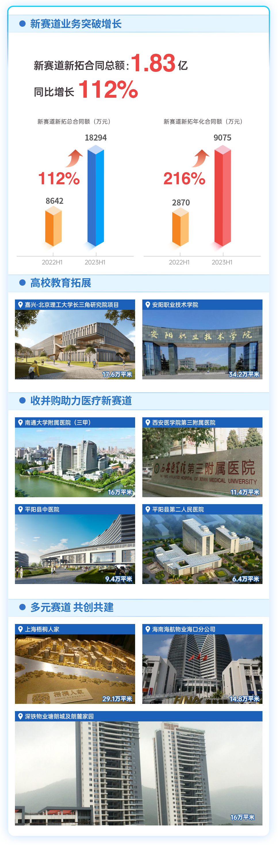 2023年上半年,新賽道新拓總合同額1.83億元,同比增長112%,年化合同額超9千萬,同比增長216%。