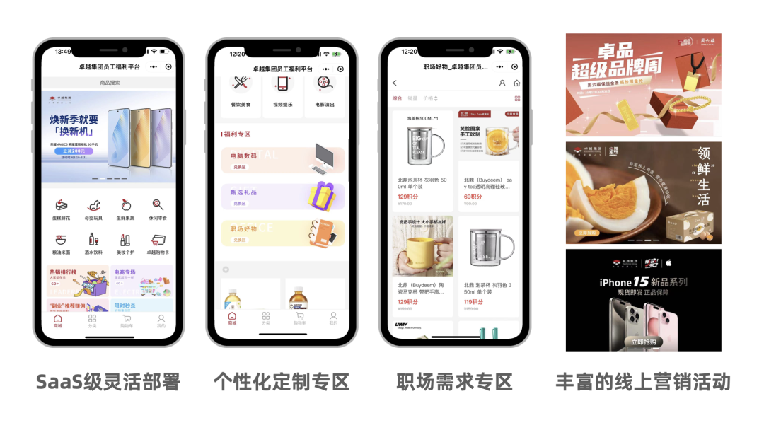 以卓越集團為例,2022年12月份選擇卓品員工福利平臺SaaS,從需求調研、平臺部署、界面設計到商品上架、正式運營, 1個月的時間完成這一系列的專屬定制,得益于SaaS產品靈活部署的特點。卓品對平臺的用戶進行定位,認為司齡在5年以上的骨干型員工為核心用戶,以他們?yōu)槠脚_畫像設計選品。